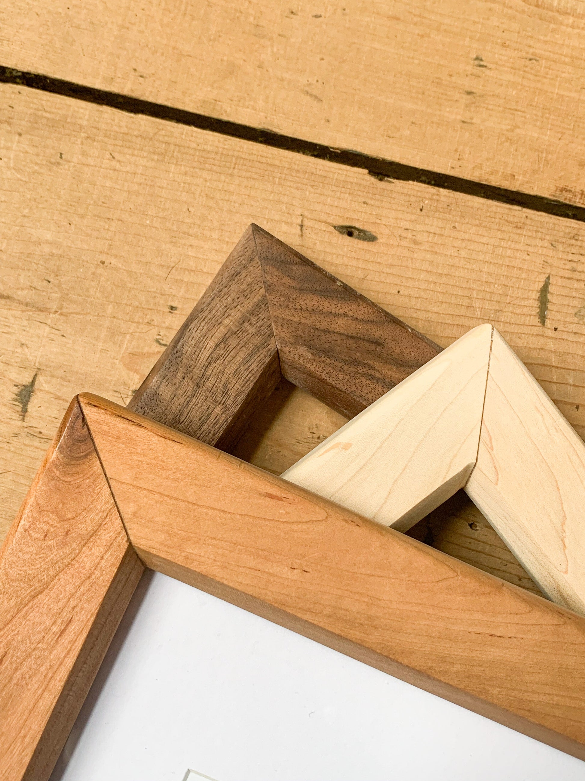 Frames are crafted of solid hardwood. Due to the nature of wood grain, no two frames are the same and the one you receive may have differences in colour and texture. Frames are completed with a white matte board and clear shatterproof PET insert.