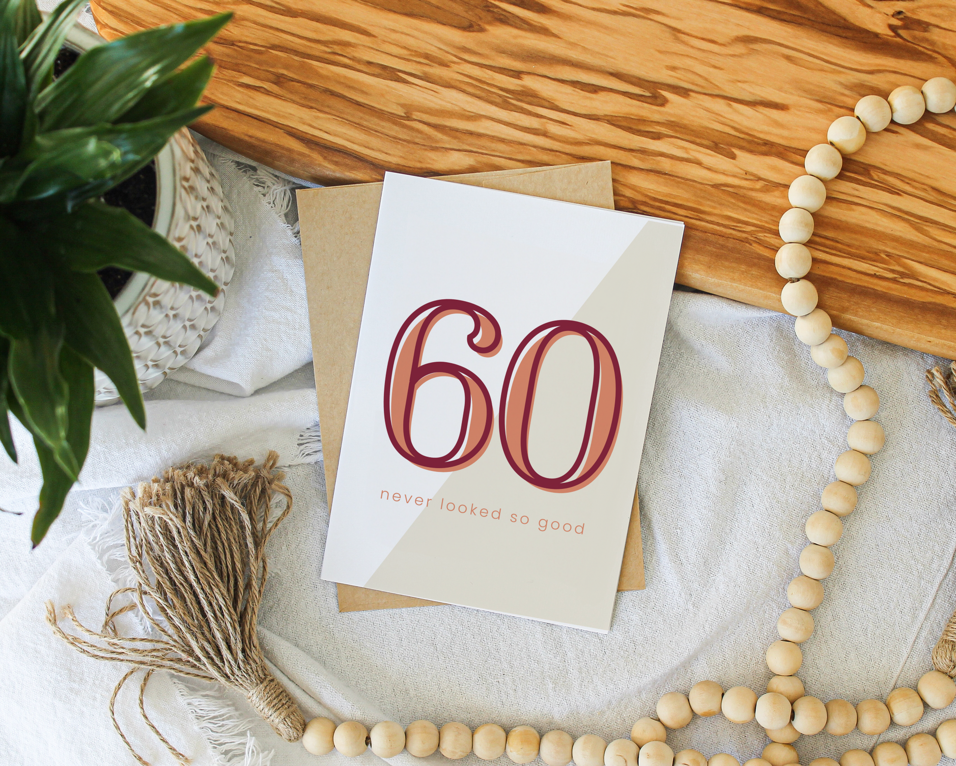 Turning 60 never looked better! Celebrate with this vibrant birthday card that exclaims: "60 never looked so good." Show them that age is just a number with this playful and humorous greeting. Let's party!