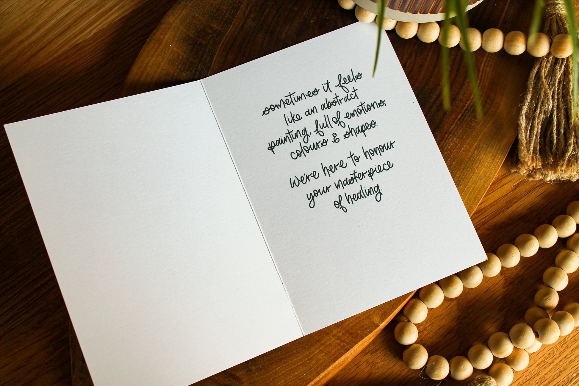 - Inside reads: Sometimes it feels like an abstract painting, full of emotions, colours & shapes. We're here to honour your masterpiece of healing.