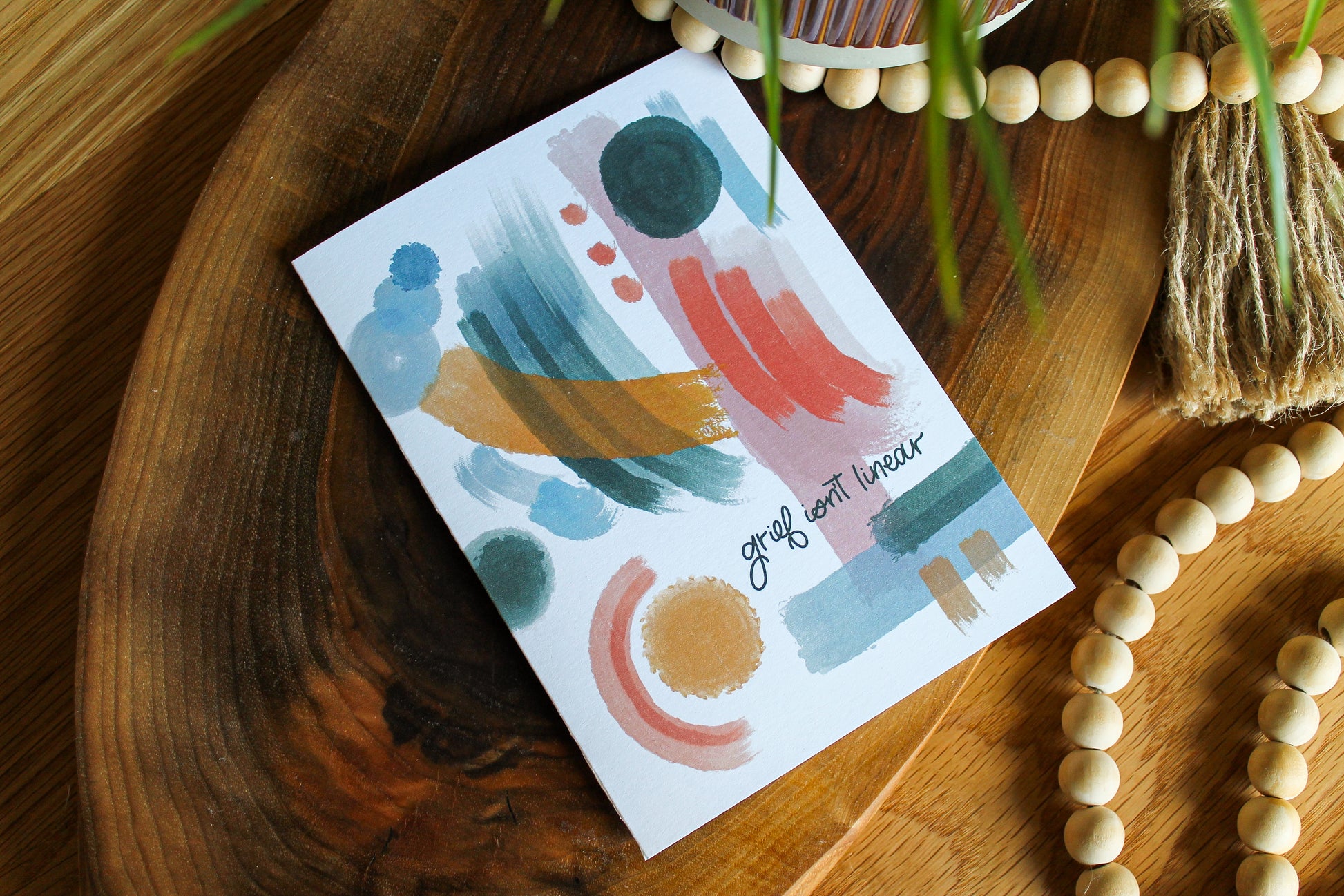 Our Grief Abstract condolence helps your loved one honour their healing journey. Its design is a reminder that grief is not linear and everyone's path to processing loss and healing is different.