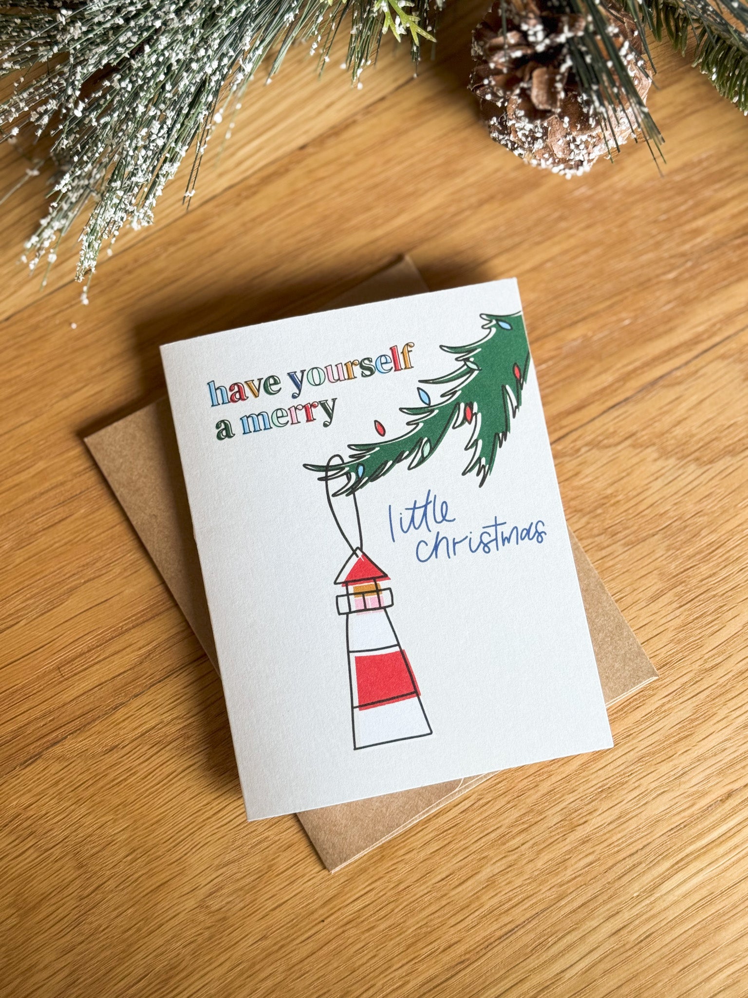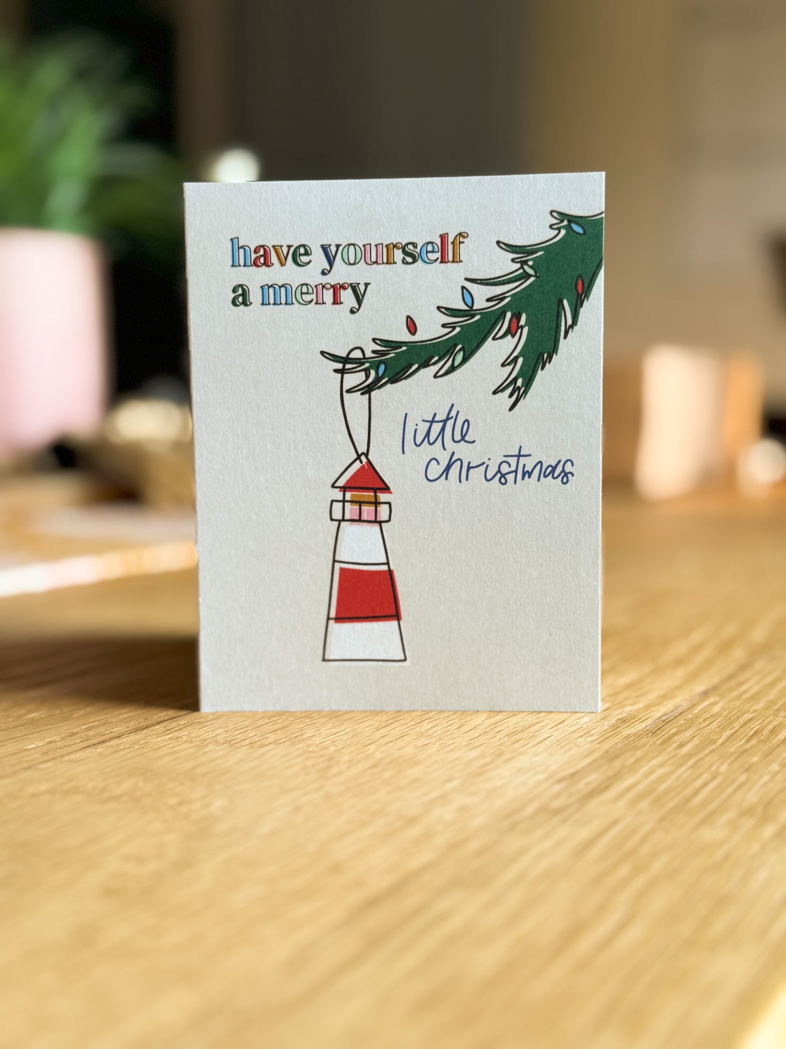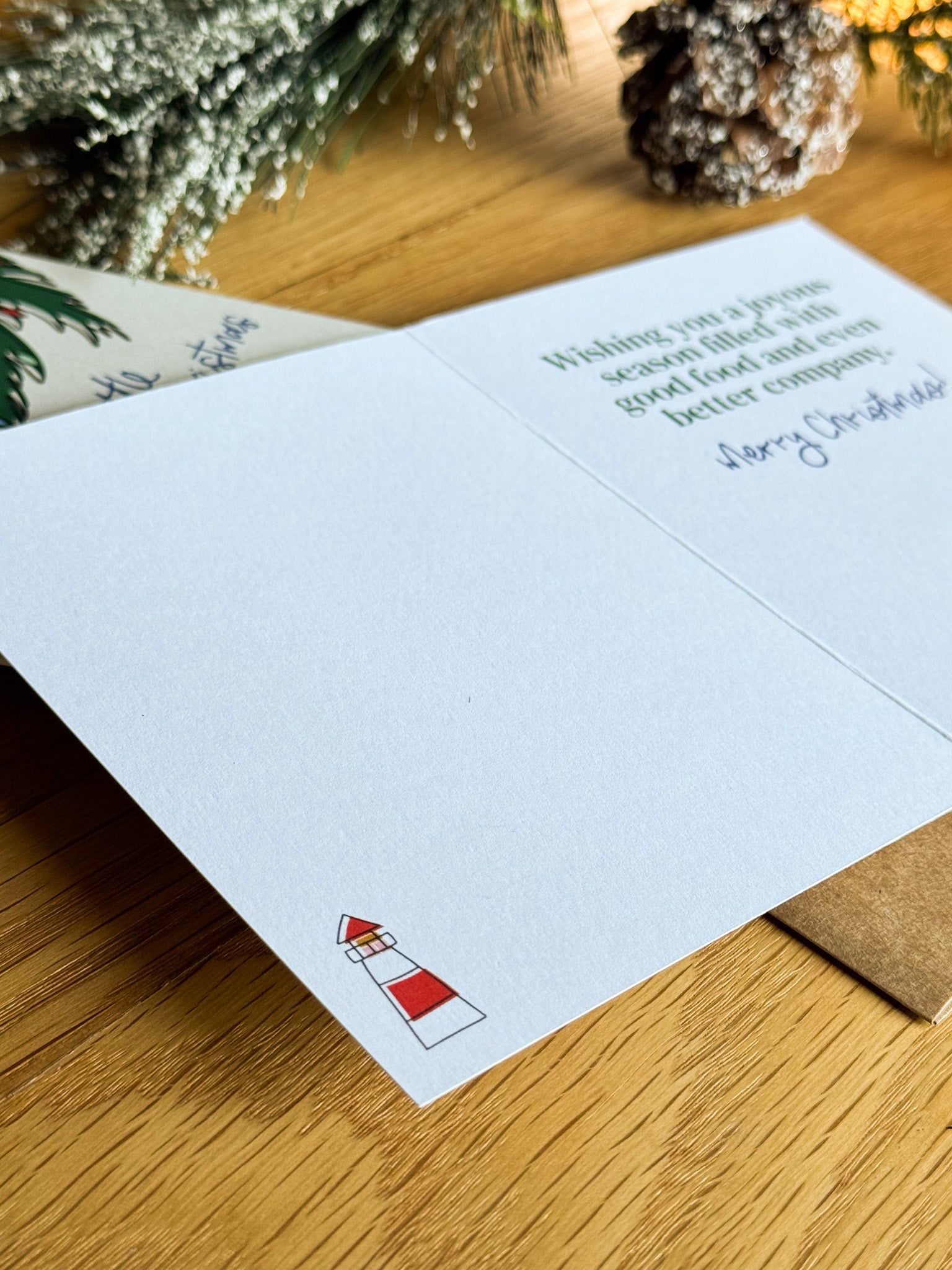 Light up your holiday with our Lighthouse Ornament Holiday Card from the 2024 Christmas Card Collection. Featuring a merry little Christmas greeting and a charming lighthouse design that brings a touch of the east coast to your holiday season.