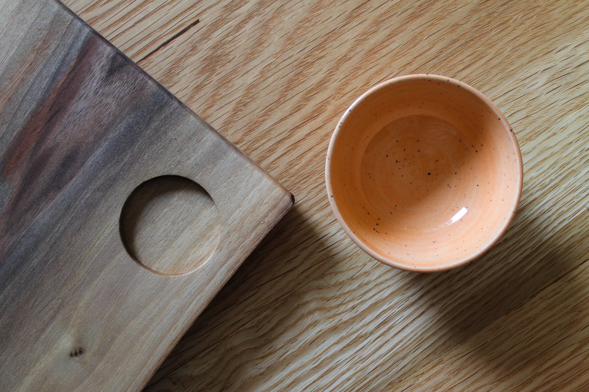 Imagine presenting your favourite appetizers, cheeses or charcuterie on this remarkable serving tray. The natural beauty of handcrafted wood meets the unique charm of hand-thrown pottery in a presentation that's sure to captivate your guests.
