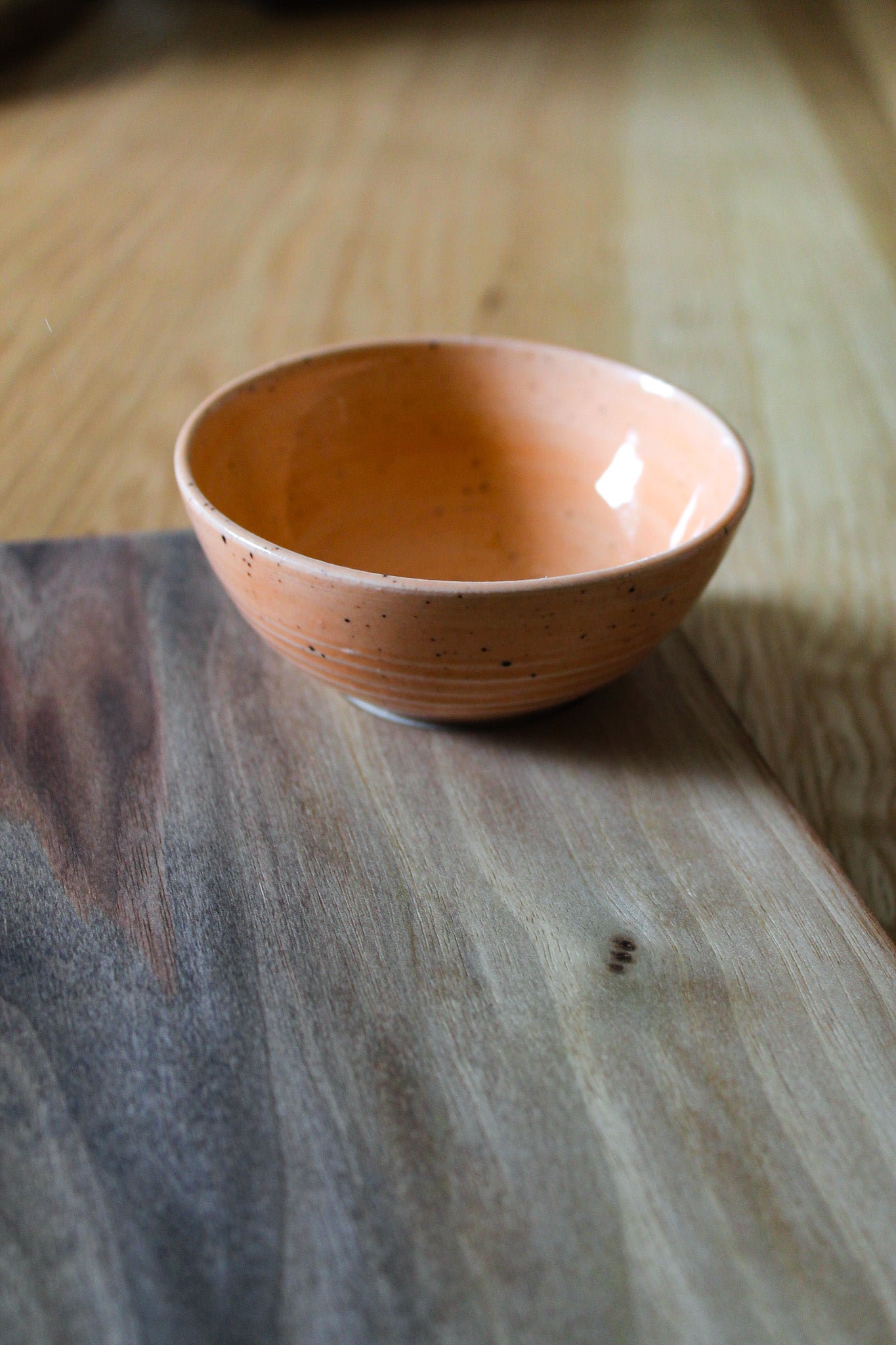 Introducing a masterpiece of craftsmanship and collaboration: the Limited-Edition Medium Serving Tray in live-edge walnut with accompanying handcrafted pottery bowl in tangelo orange. A unique creation brought to life by Stillbay Home Goods and Two Fishes Pottery, this is not just a serving tray: it's a work of art designed to elevate your dining and serving experience.