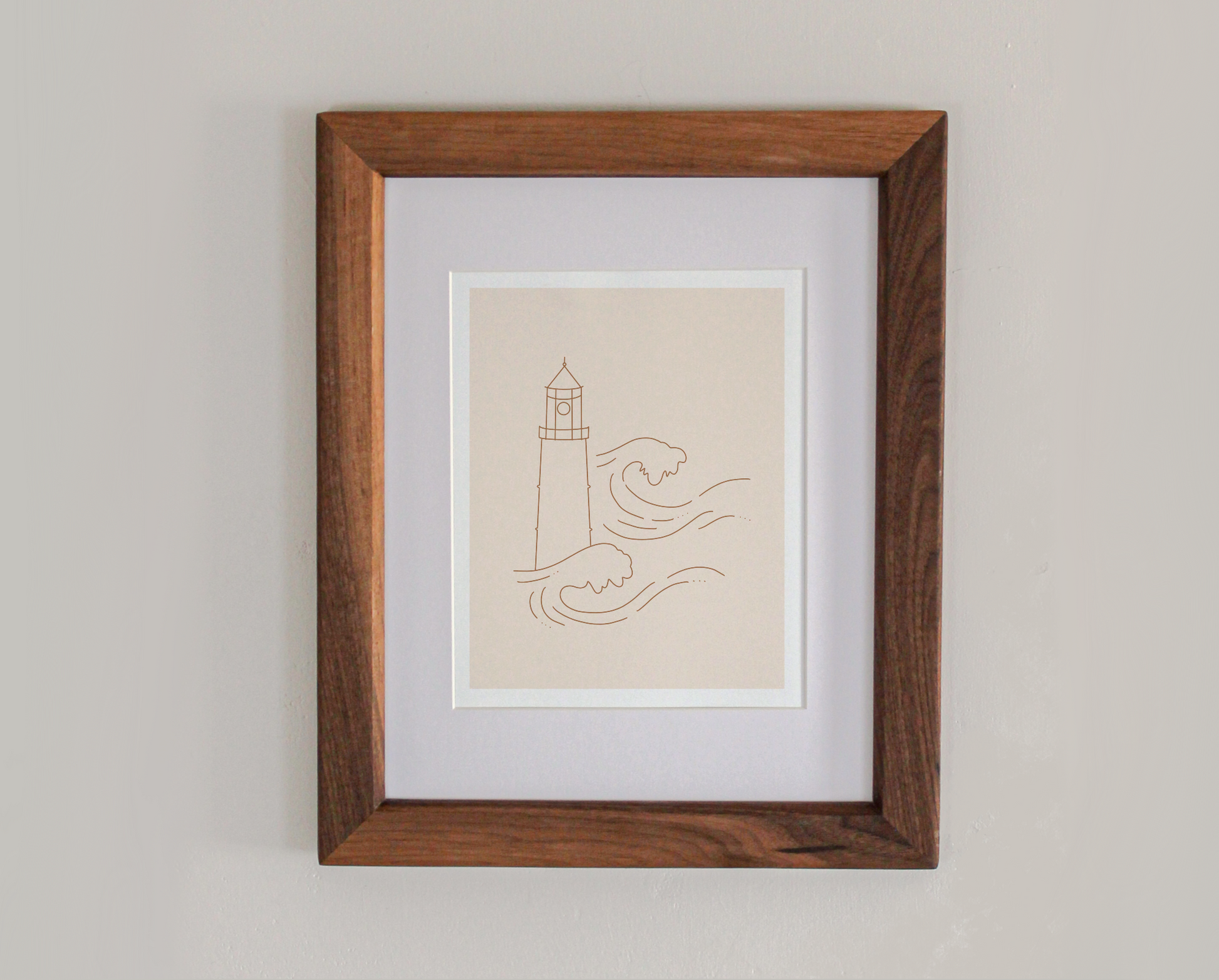 Frames are hand-crafted at Stillbay and are available in solid black walnut, cherry or maple hard woods. Sized at 11x14" and matted to 8x10" and includes hanging hardware but no kickstand.