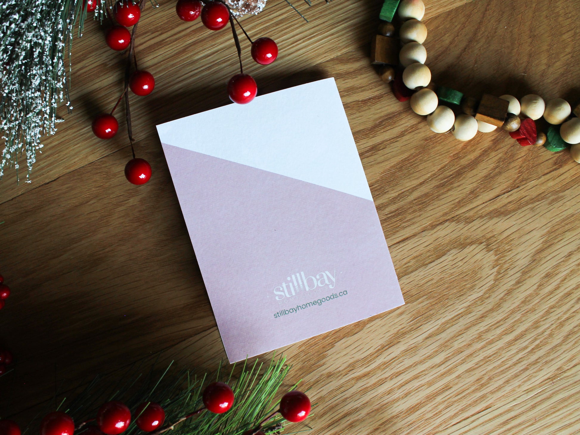 "Stockings" hung with care, just like your warm holiday wishes. This exclusive Christmas card features original art by Hilary of Stillbay Home Goods. Designed in Yarmouth County, Nova Scotia, and printed on eco-friendly paper in Canada.